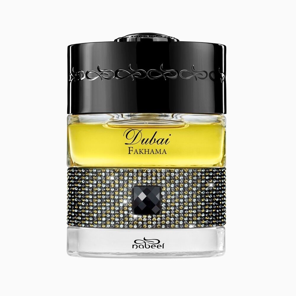 Fakhama zawiera wszystko, co luksusowe w Dubaju. Hipnotyzujący zapach, w którym połączono najlepsze z róż; w tym róża turecka i róża bułgarska. Róże to jeden z najpiękniejszych i najbardziej cenionych kwiatów, ceniony od stuleci, a zapach ten łączy się z oudem, bogatą wanilią i wetywerią, afrodyzjakiem, który nadaje aromat dla smakoszy. Uzupełnione nutami bazy: ambra, kadzidło, skóra i mech dębowy.